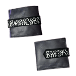 (1) Nový černý pásek z nevyužitých rybářských kalhot, potištěný sítotiskem přes ručně vyřezávanou šablonu
